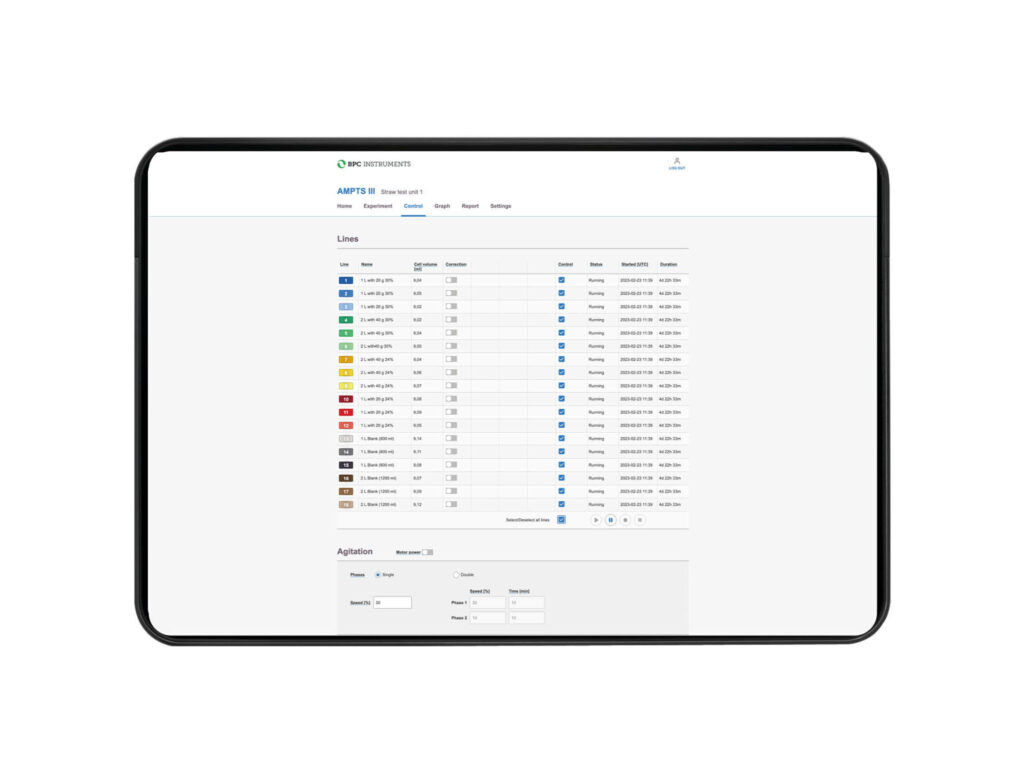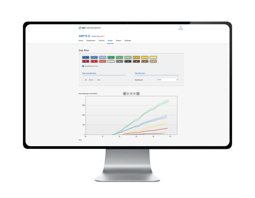 AMPTS? II Light使您可以輕松即時訪問在異地進行的實驗,隨時隨地遠程生成實驗報告,這可以節省大量時間和精力。而標準化的測量程序,數據轉化和對測試外界環境條件變化所實時自動補償計算,以及標準化的實驗數據報告不僅可以讓不同實驗室間的數據得以科學嚴謹的對比和相互參考,更可以使沼氣工廠對評估物料品質評估,物料和工藝優化的效果評估有標準和科學嚴謹的依據。